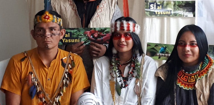 L’arrivée du pétrole dans cette région d’Équateur ne date pas d’hier. “Contactés il y a une cinquantaine d’années, mon peuple, les Waoranis, ont vu leur territoire envahi par l’industrie pétrolière qui a pollué nombre de site sacrés, nos espaces de vie et de chasse, réduisant la superficie de notre territoire sans aucun avantage contrairement à ce que veut faire croire le gouvernement”, témoigne Joana du peuple Waorani”. Et d’ajouter : “Nous avons activement milité pour défendre cette terre, nous avons parcouru le pays pour faire campagne pour le oui au référendum et le résultat a été une grande victoire en faveur de la vie. Nous voulons vivre en paix, sans les pétroliers!”