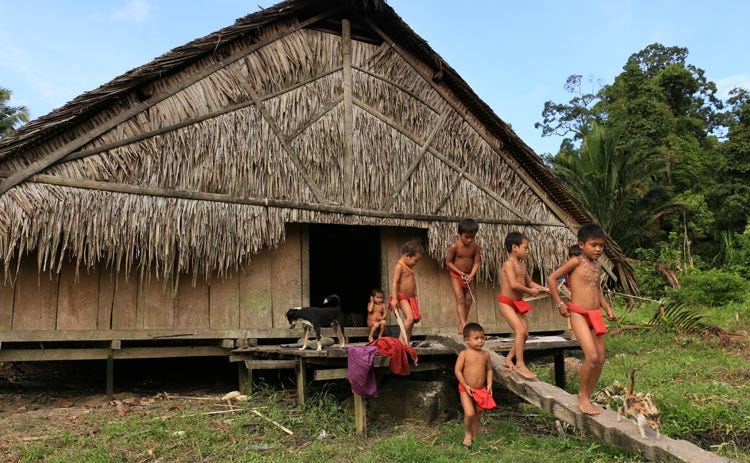 Leurs enfants n’ont aucun accès à l’enseignement. Ceux qui veulent aller à l’école, sont contraints de s’y rendre à pieds à travers la jungle. Ce sont dans la plupart des cas plusieurs heures d’une longue marche à travers la forêt, le long des rivières, sur des terrains spongieux, une marche qui n’est pas sans danger pour les plus jeunes. D’autres, dont les Uma sont les plus éloignées, préfèrent rester dans les internats qui flanquent souvent les écoles confessionnelles chrétiennes ou musulmanes.